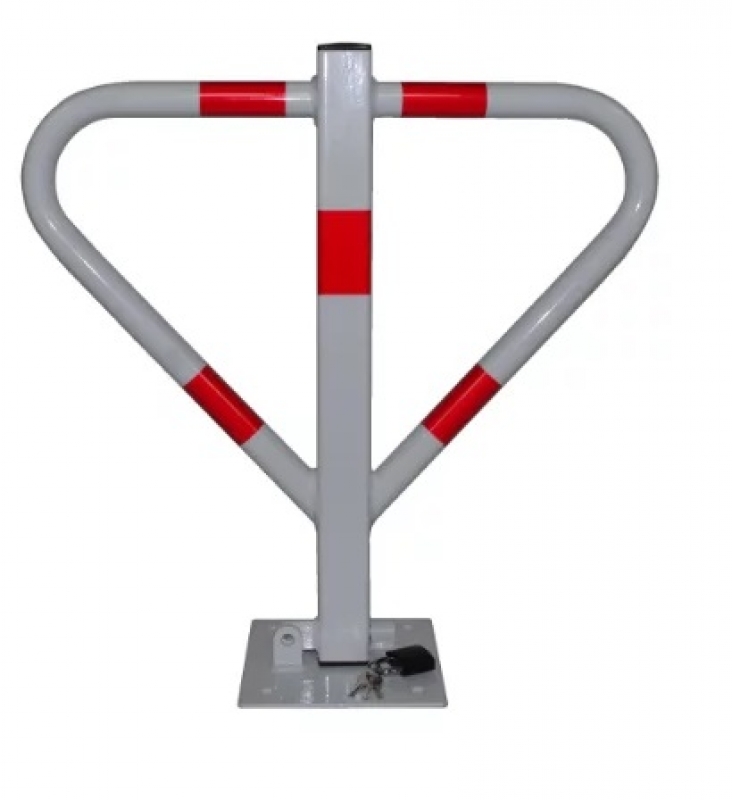 Blokada parkingowa B105 wykończony cynkowaniem galwanicznym (kolor srebrny) lub malowaniem proszkowym z podkładem cynkowym (kolor biały). Blokada parkingowa B105 posiada 5 czerwonych pasów ostrzegawczych 80 mm z folii drogowej I generacji oraz gumowy odbojnik z metalową tuleją.