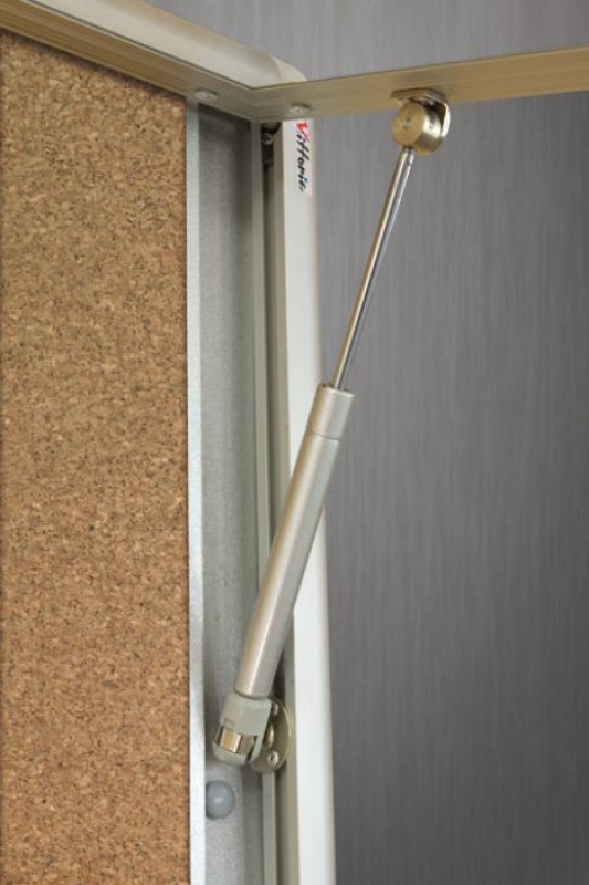 Drzwi gabloty wykonane są ze szkła hartowanego, lub pleksi za dopłatą na zamówienie, otwierana na bok lub do góry wspomagane dwoma siłownikami gazowymi.