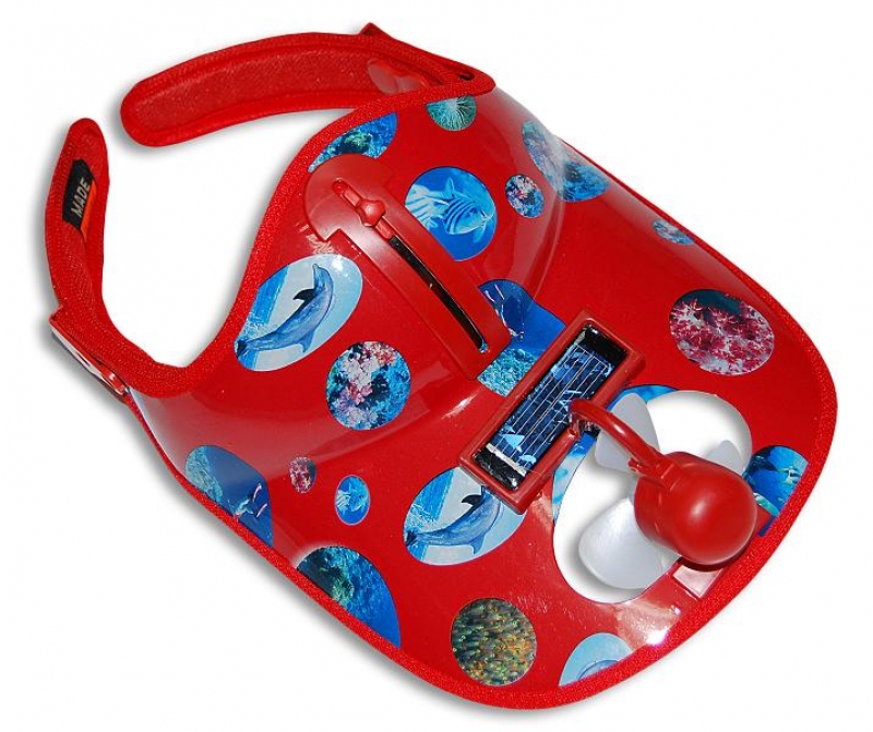 Wbudowany wiatraczek zasilany ogniwem słonecznym zapewnia chłodzenie w słoneczne dni, a okulary chronią przed promieniami słonecznymi.