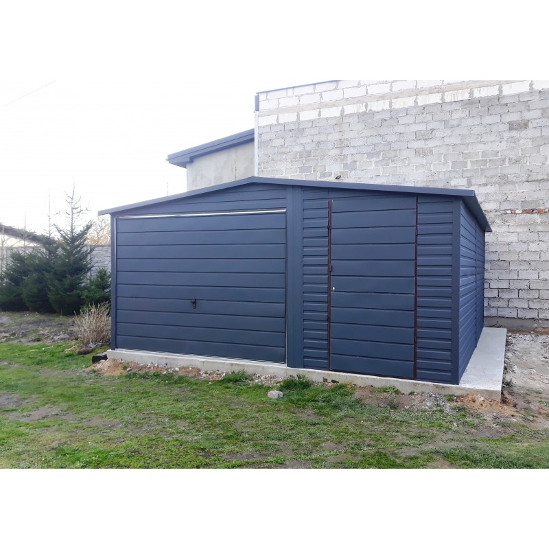 Garaż Blaszany 5X6 Kolor Grafit Dach Dwuspadowy Dodatkowe Wejście